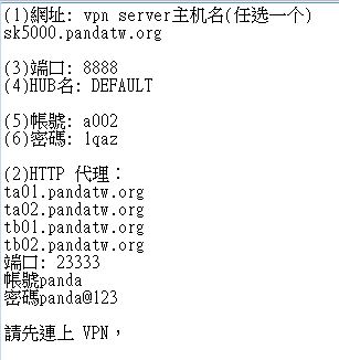 1. 收到连线资料后 按照底下资料 输入到客户端