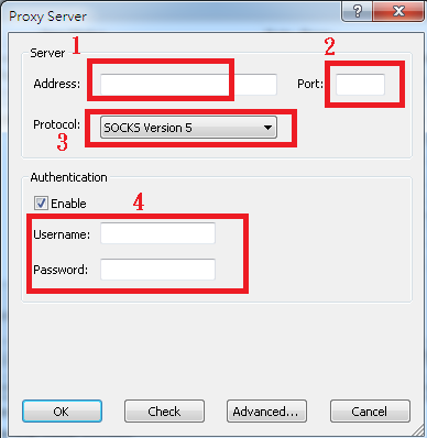 4. 輸入 Socks5 代理資料: