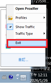 8. 關閉代理: 若要停止使用,將 Proxifier 軟體完全關閉即可恢復本地連線。